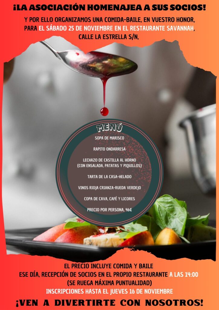 ¡¡COMIDA-BAILE EL DÍA 25 DE NOVIEMBRE!!